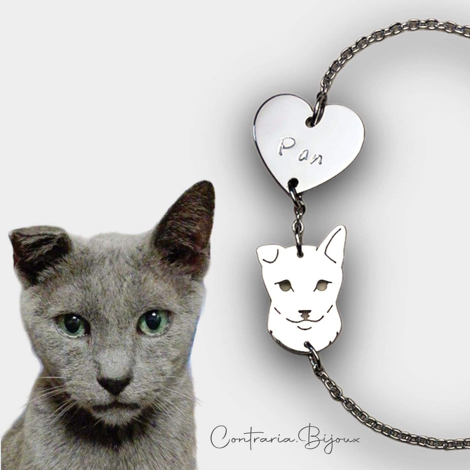 Bracciale ciondolo personalizzato gatto - Regalo unico per amanti dei gatti