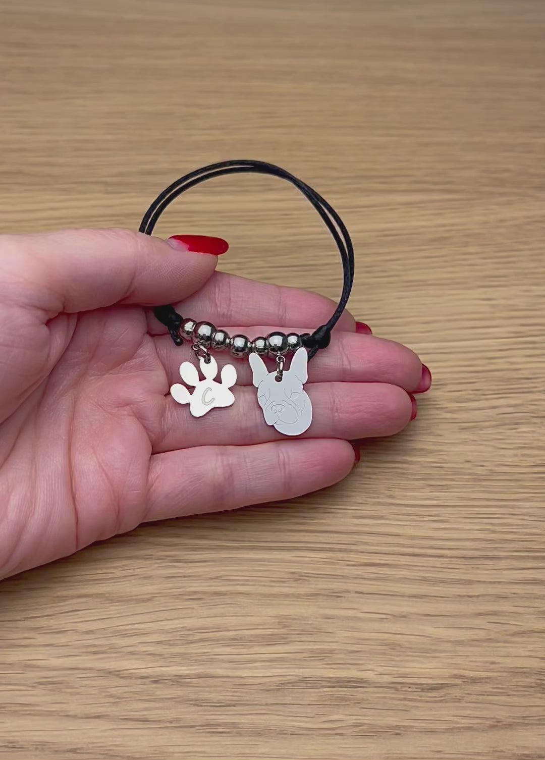 Bellissimo bracciale con ciondolo cane Bulldog Francese e zampa/cuore personalizzato con iniziale incisa.