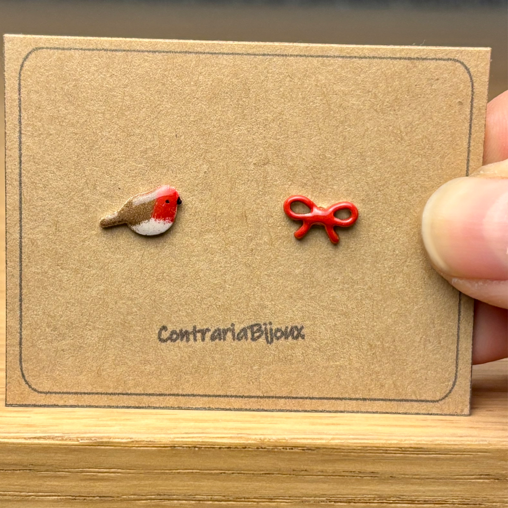 I nostri orecchini a lobo in acciaio a forma di pettirosso e fiocco rosso sono piccoli e delicati, perfetti per chi ama gli animali e cerca un accessorio discreto ma originale.