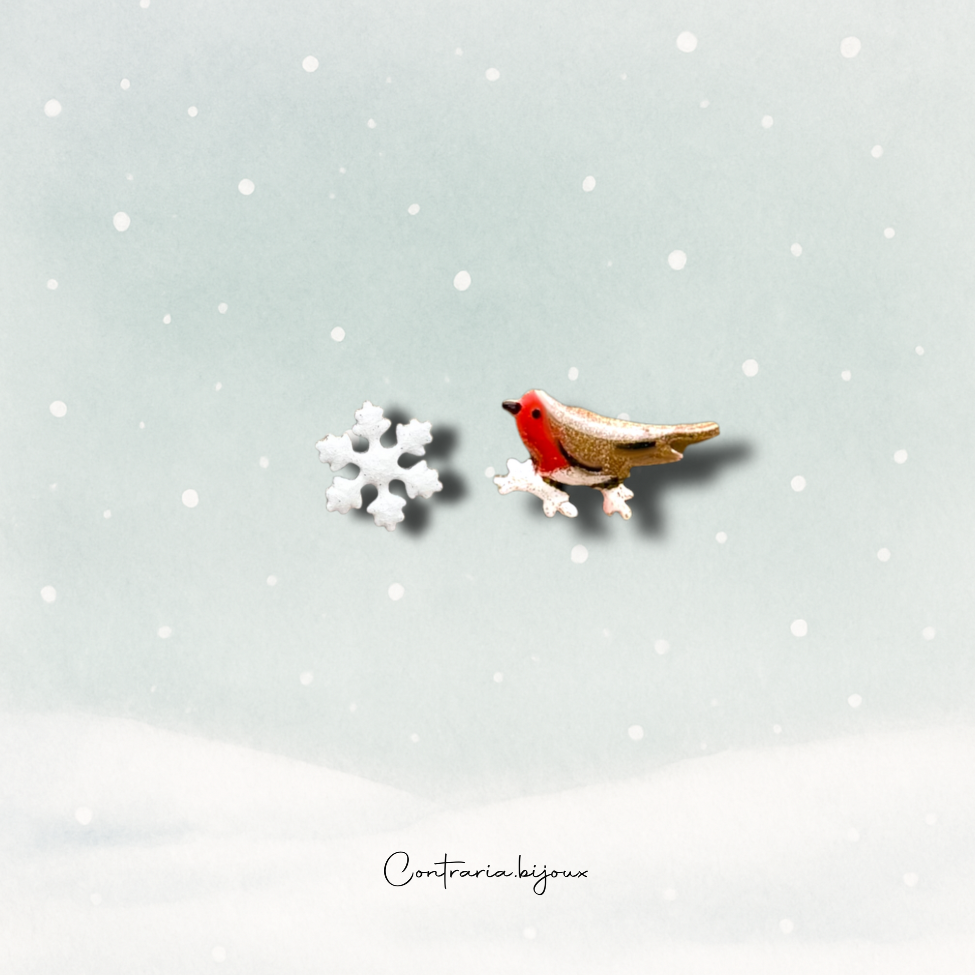 I nostri orecchini a lobo in acciaio a forma di pettirosso e fiocco di neve sono piccoli e delicati, perfetti per chi ama gli animali e cerca un accessorio discreto ma originale.