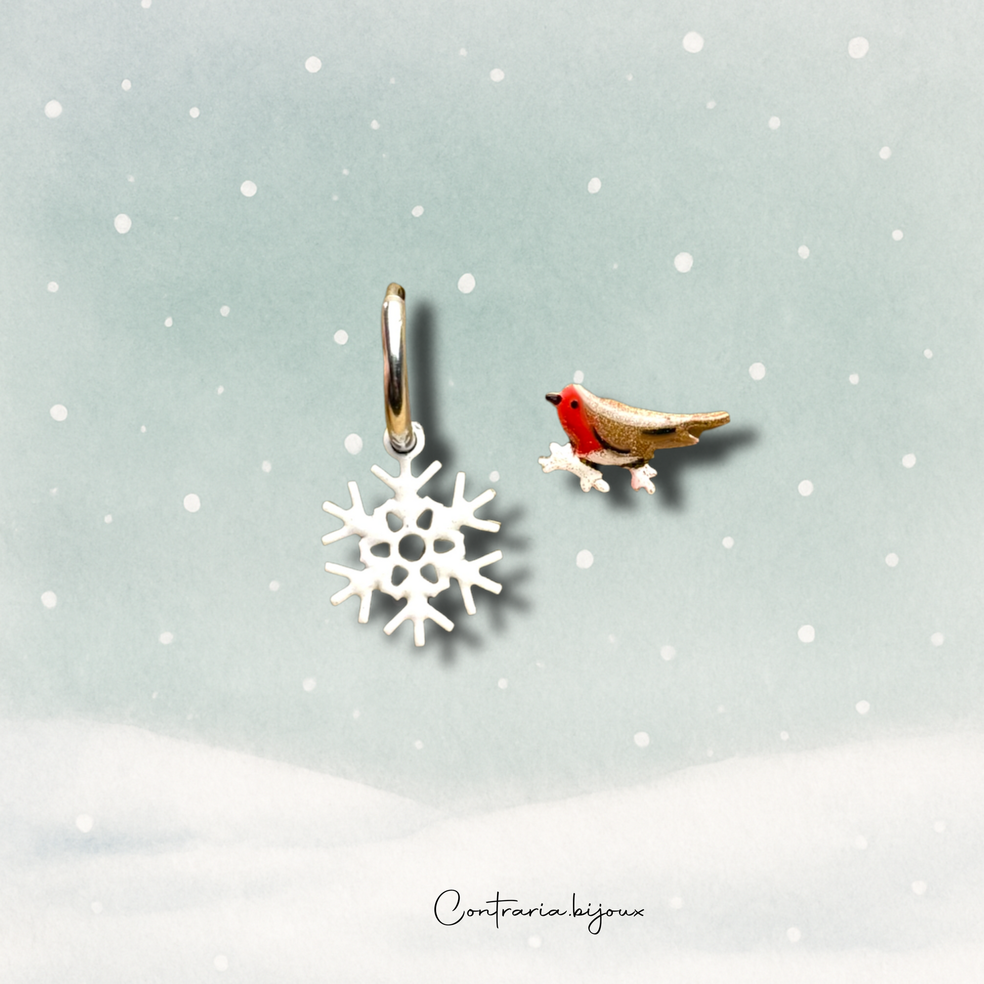 I nostri orecchini a lobo in acciaio a forma di pettirosso e fiocco di neve sono piccoli e delicati, perfetti per chi ama gli animali e cerca un accessorio discreto ma originale.